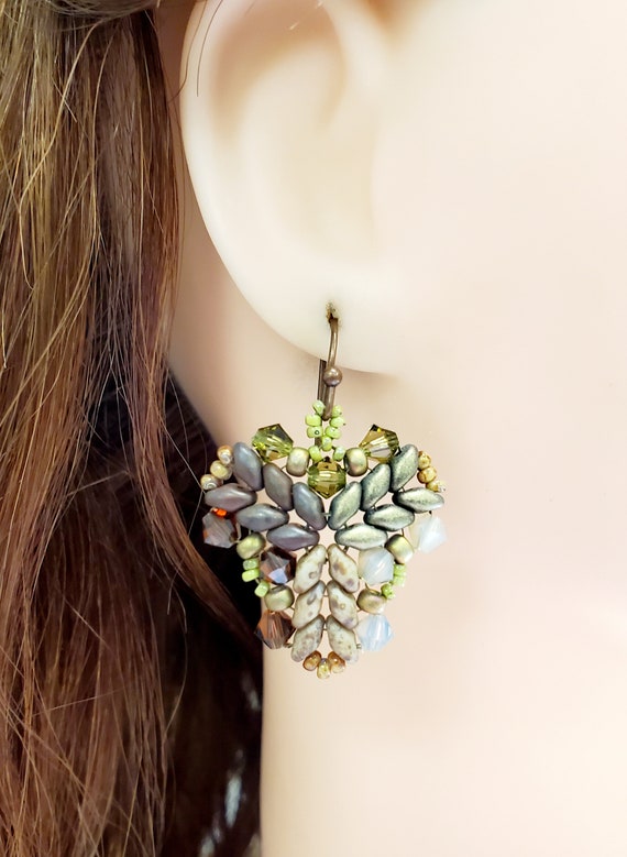 Muar Earrings In Fall Greens Brown And Tans Superduo Beads Etsy India